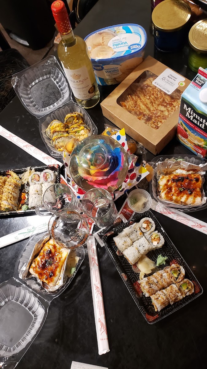 8pcs 420 Roll, 8pcs Lucky Roll, 8pcs CA Roll , 8pcs Spicy Tuna Roll, 2pcs Salmon Nigiri, 2pcs With Tuna Nigiri, 2pcs Ebi Nigri